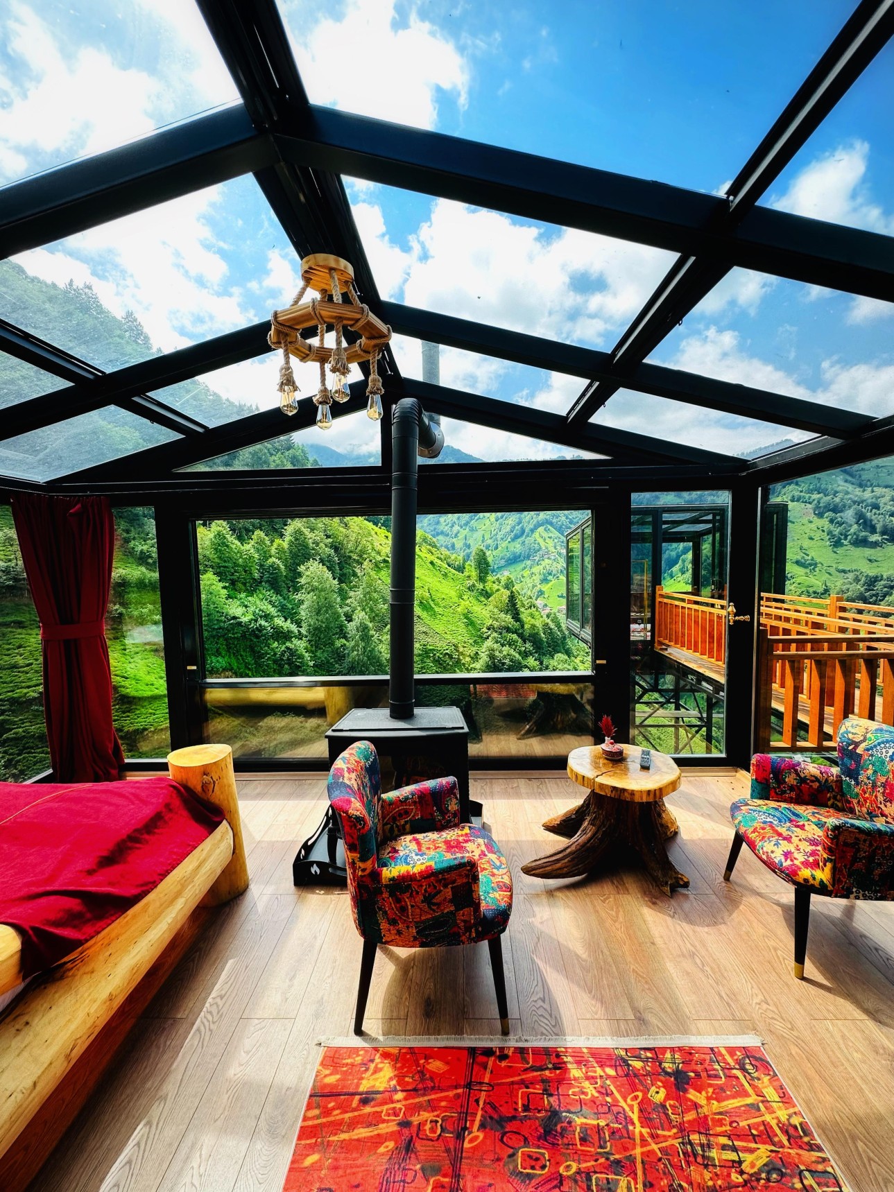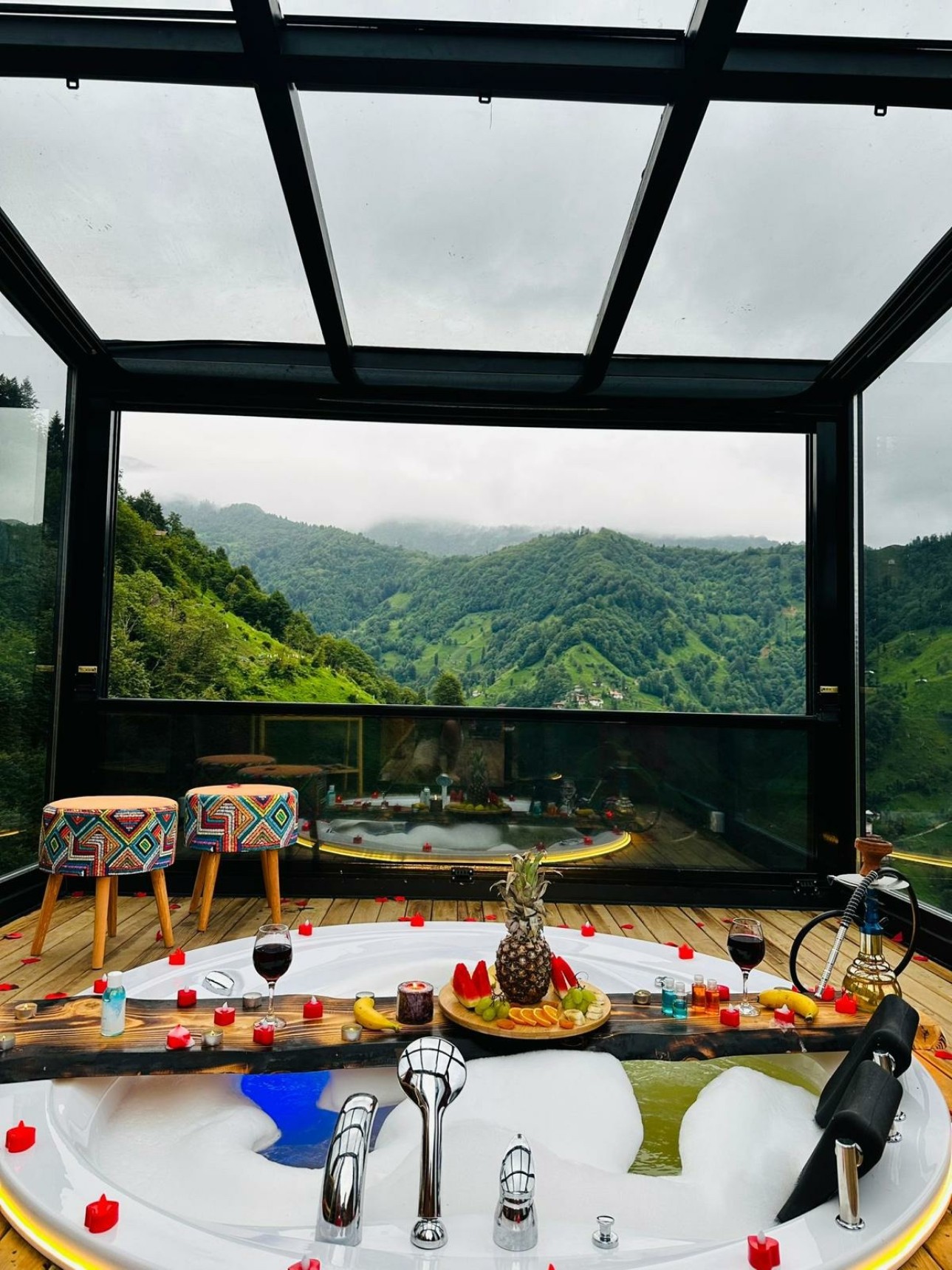 Evin tasarımında mahremiyet önemsenip bütün cam detaylarda kendi yaşam alanınızı oluşturabileceğiniz, cam tavan, ön pencerenin komple açılması ve eve ait ‘’Kulenin içinde jakuzi’’ mimari tasarımıyla Yurtiçi ve Yurtdışında bulamayacağınız özgün benzersiz bungalov evimizdir.