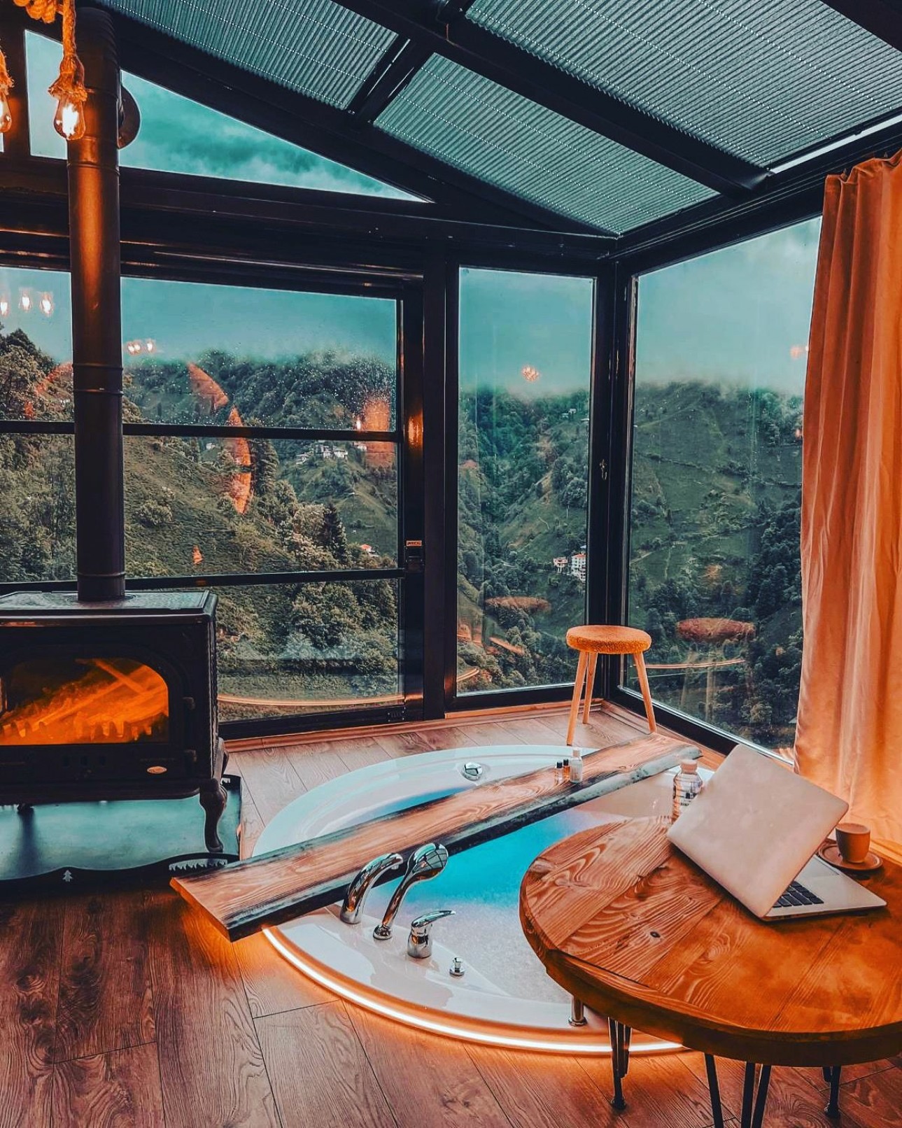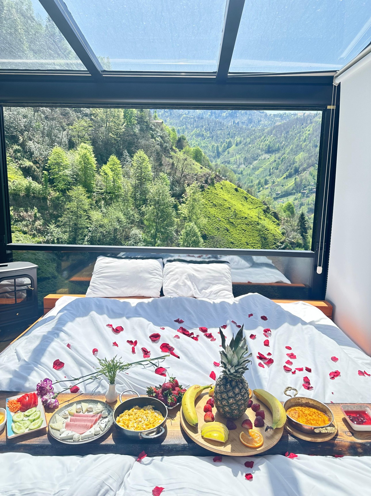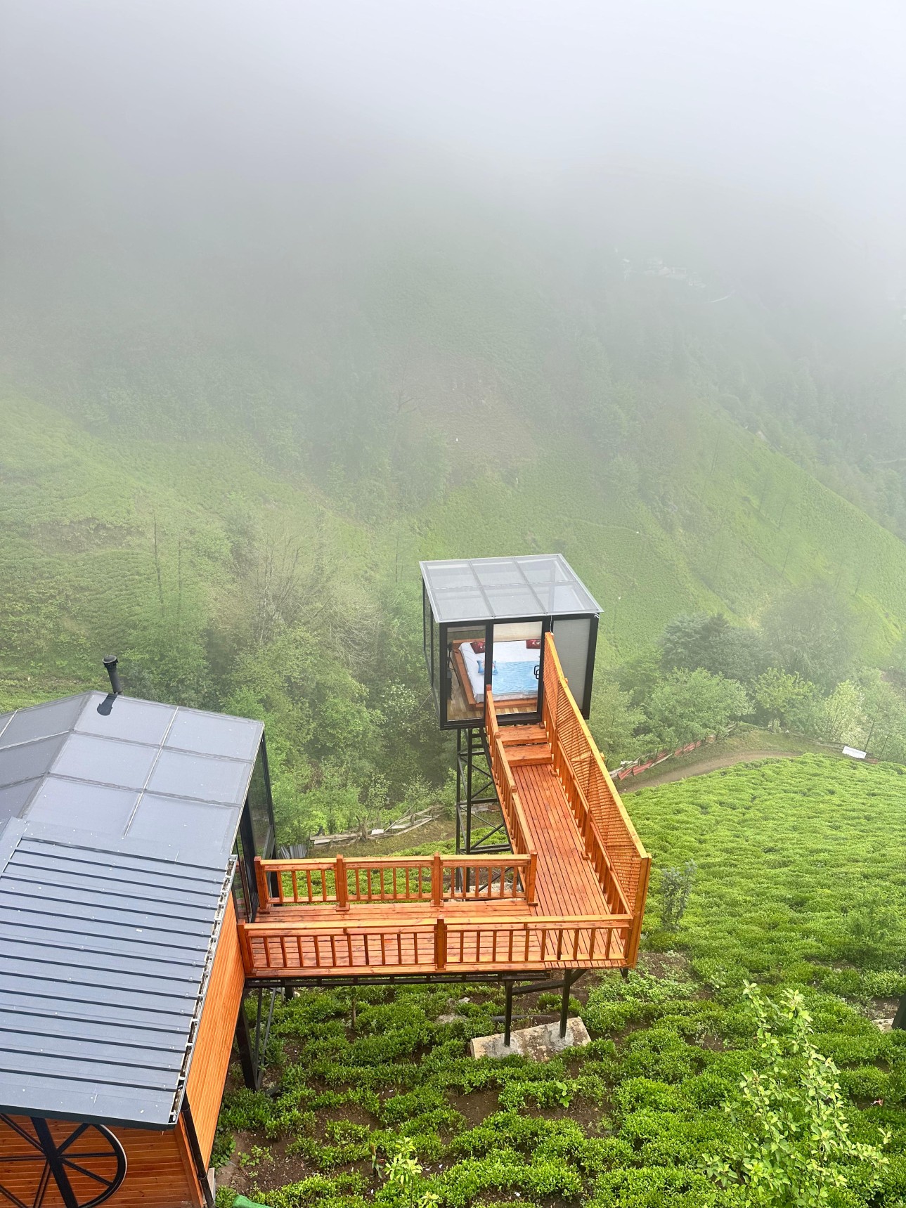 Evin tasarımında mahremiyet önemsenip bütün cam detaylarda kendi yaşam alanınızı oluşturabileceğiniz, cam tavan, ön pencerenin komple açılması ve eve ait ‘’Kulenin içinde Sinema ’’ mimari tasarımıyla Yurtiçi ve Yurtdışında bulamayacağınız özgün benzersiz bungalov evimizdir.